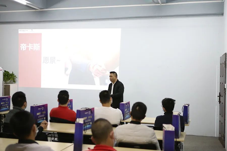 隨后營(yíng)銷中心的銷售顧問(wèn)藍(lán)經(jīng)理在與學(xué)員的互動(dòng)中詮釋了帝卡斯的企業(yè)文化、十大軍規(guī)背后的含義,進(jìn)行了新型技術(shù)人才必備的心智模式培養(yǎng);本次開班儀式也讓學(xué)員從光榮歷程和服務(wù)團(tuán)隊(duì)了解帝卡斯應(yīng)對(duì)未來(lái)市場(chǎng)的實(shí)力。
