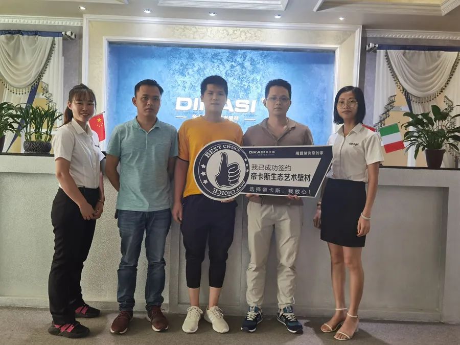 展會期間,人潮川流不息,但仍有很多人被帝卡斯生態(tài)藝術(shù)壁材驚艷到,也看到了藝術(shù)涂料的發(fā)展前景,為帝卡斯駐足,還未閉館就主動報名欲前往帝卡斯總部參觀簽約,加入帝卡斯大家庭共同發(fā)展。