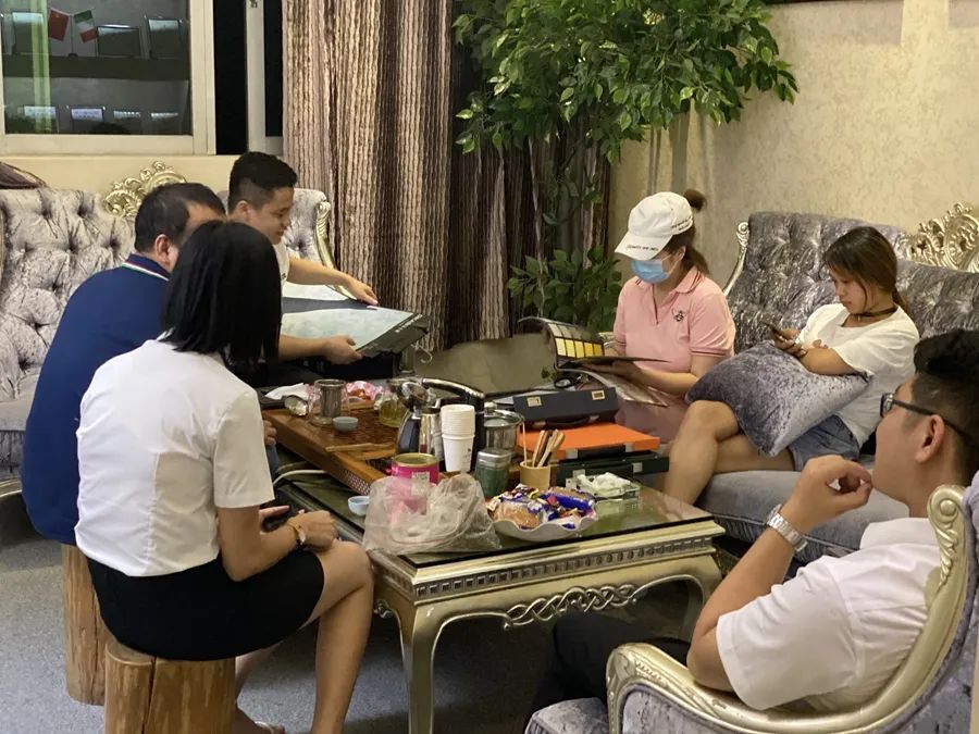 7月9日,廣州建博會進行到第二天,帝卡斯&威尼托展館持續(xù)火爆,藝術(shù)涂料受到諸多意向加盟商的熱烈追捧,自動報名前往帝卡斯總部參觀,現(xiàn)場還有數(shù)百位客商在積極咨詢洽談中。